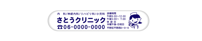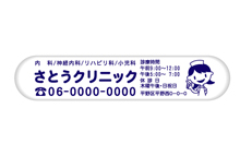 ●文字表現で医院名・診療科目・電話番号・診療時間・休診日に住所まで入ったレイアウトです。右端にはお好きなイラスト・マークが入れることができます。必要な内容は全て盛り込んだデザインになります。 |